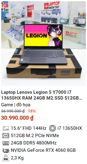 - » [TOP 5]Laptop Lenovo Legion 5 Y7000 i7 13650HX RAM 24GB M2.SSD 512GB FHD 144Hz NVIDIA GeForce RTX 4060 8GB