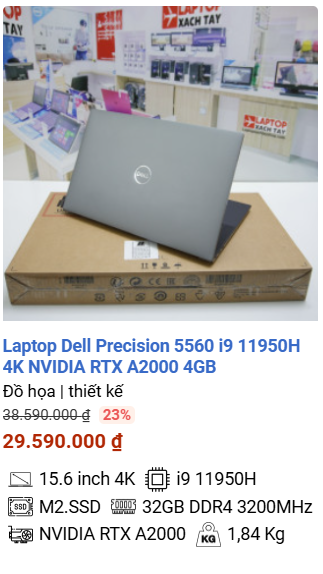 - » [TOP 4]Laptop Dell Precision 5560 i9 11950H 4K NVIDIA RTX A2000 4GB
