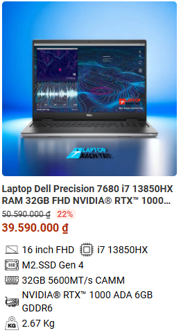 » [TOP 5]Laptop Dell Precision 7680 i7 13850HX RAM 32GB FHD NVIDIA® RTX™ 1000 ADA 6GB GDDR6