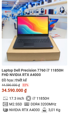 » [TOP 4]Laptop Dell Precision 7760 i7 11850H FHD NVIDIA RTX A4000