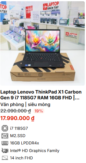 » [TOP 2]Laptop Lenovo ThinkPad X1 Carbon Gen 9 i7 1185G7 RAM 16GB FHD M2.SSD 512GB