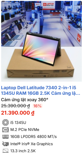 » [TOP 3]Laptop Dell Latitude 7340 2-in-1 i5 1345U RAM 16GB 2.5K Cảm ứng lật xoay 360 độ M2.SSD 512GB