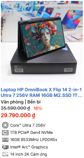» [TOP 4]Laptop HP OmniBook X Flip 14 2-in-1 Ultra 7 256V RAM 16GB M2.SSD 1TB 2K Cảm ứng lật xoay 360 độ – New Spectre 2025