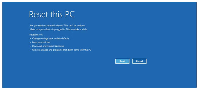 Trong quá trình này, trước tiên Windows sẽ reset thiết bị của bạn để xóa tất cả dữ liệu và sau đó cài đặt lại hệ điều hành. Có thể mất một lúc để hoàn tất quá trình, vì vậy hãy để thiết bị của bạn ở chế độ chờ và kết nối với ổ cắm điện.