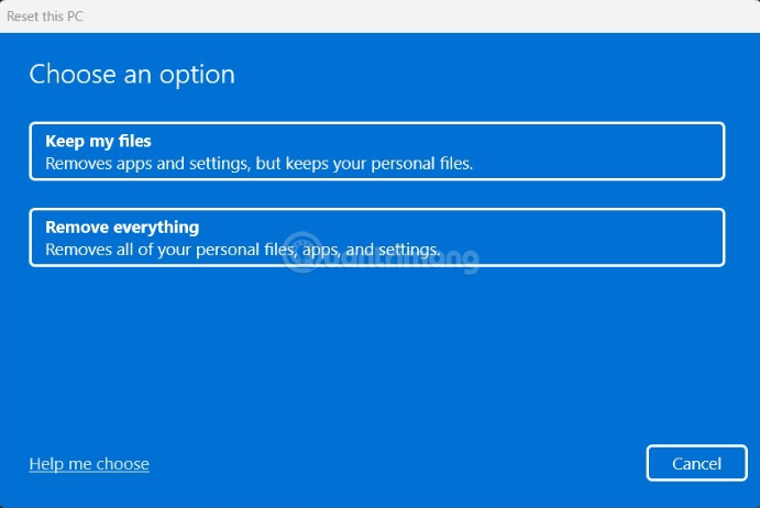 Remove Everything: Chọn tùy chọn này để xóa mọi thứ trên hệ thống, bao gồm ứng dụng, cài đặt và thậm chí cả tệp cá nhân của bạn. Đây sẽ là tùy chọn tối ưu nếu bạn có ý định bán hoặc tặng thiết bị của mình cho một người khác.