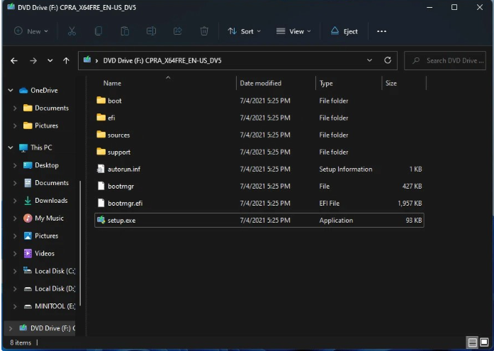 Bước 2: Nhấp vào ổ đĩa ảo vừa xuất hiện chứa tệp ISO cài đặt Windows 11. Nhấp đúp vào ổ đĩa này để mở rồi tìm và nhấp đúp vào tệp setup.exe để bắt đầu quá trình cài đặt Windows 11.