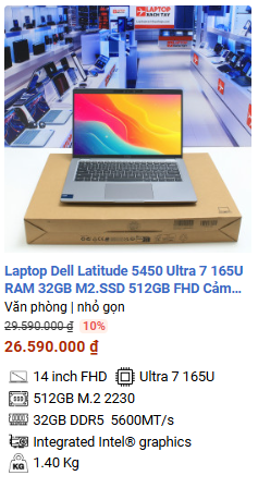 » [TOP 4]Laptop Dell Latitude 5450 Ultra 7 165U RAM 32GB M2.SSD 512GB FHD Cảm ứng