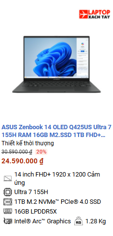» [TOP 5]ASUS Zenbook 14 OLED Q425US Ultra 7 155H RAM 16GB M2.SSD 1TB FHD+ Cảm ứng