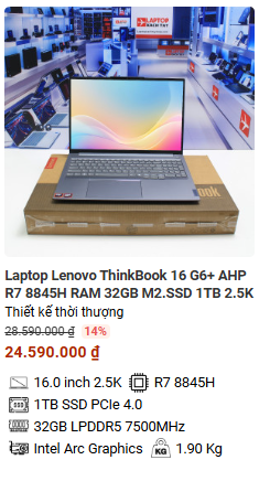 Laptop Lenovo ThinkBook 16 G6+ AHP R7 8845H RAM 32GB M2.SSD 1TB 2.5K