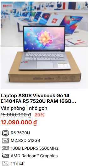 ASUS VivoBook, ExpertBook: từ 10–20 triệu đồng