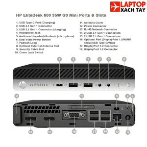 • Cổng giao tiếp: (6) USB 3.1 Gen 1: (2) front (including 1 fast charging); (4) rear | (1) USB Type-C 3.1 Gen1, front; (1) USB Type-C 3.1 Gen1 (optional), rear | (2) DisplayPort with multi-stream | (1) DisplayPort (optional) | (1) VGA (optional) | (1) HDMI (optional) | (1) USB-C (optional) | (1) Front: Headset and Headphone | (1) RJ-45 Ethernet port