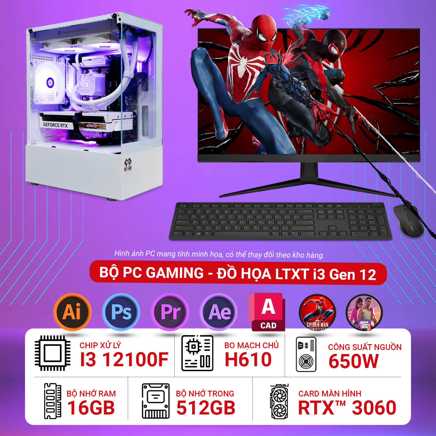 Máy tính để bàn lắp ráp Gaming đồ họa LTXT i3 12100F | NVIDIA® GeForce RTX™ 3060 12GB
